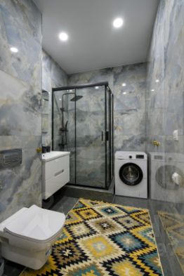 Санузел: Душевая система с различными вариациями режимов. Стиральная машина. Теплый пол.
