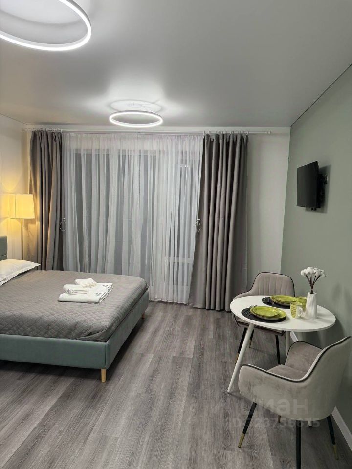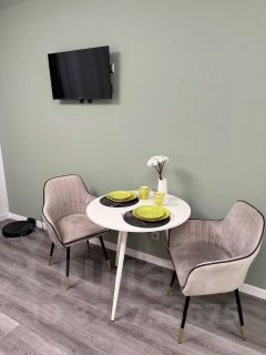 Полностью оборудованная: варочная панель на 2 конфорки, микроволновка, холодильник, чайник, кофемашина