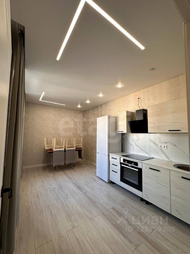 Кухня оснащена всей необходимой техникой: электрической плитой, духовым шкафом, холодильником и обеденной группой. При необходимости по отдельному согласованию возможна поставка посудомоечной машины.