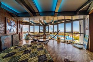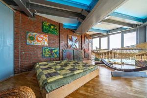 Интерьер поражает своим стилем и комфортом. Высокие потолки, деревянные полы и продуманная планировка создают уникальную атмосферу, идеально подходящую для отдыха души и тела. Здесь каждый найдет уголок для творчества, чтения книг или семейных вечеров.