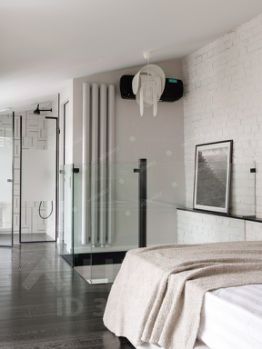 На втором уровне располагается спальня, санузел, большой гардеробный шкаф для хранения. Также здесь можно организовать рабочую зону.