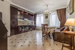 О квартире: по планировке состоит из спальной комнаты с большим встроенным шкафом и шкафом купе, просторной прихожей с гардеробной системой, совмещённого санузла с бойлером и тёплым полом, кухни со всей необходимой встроенной техникой, гостиной с камином и удобным угловым диваном.