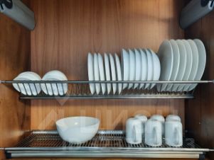 кухня с варочной плитой, холодильник, чайник, вся необходимая посуда и кухонные принадлежности.