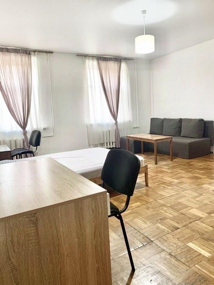Жилая площадь арендуемого вами жилища составляет 30м2. Пространство комнаты тщательно спланировано: зона отдыха (двух-спальная кровать с ортопедическим матрасом, для комфортного сана), удобная рабочая зона, где можно расположиться с ноутбуком для удаленной работы вне офиса, зона для релакса или чаепития, а так же парфюмерный столик, гардеробная зона, а так же достаточно места для домашнего занятия спортом или йогой.