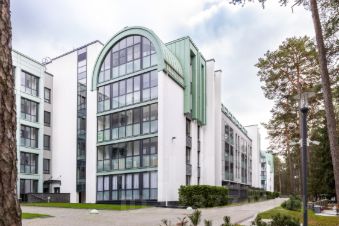 Дом стоит в окружении соснового леса, при этом нет сильного ветра с залива. Закрытый охраняемый двор с видеонаблюдением, без машин, с детскими площадками для разных возрастов, с местами для хранения велосипедов и колясок, а также подземный паркинг, из которого на лифте можно подняться прямо на свой этаж