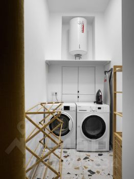Два санузла, просторная душевая и ванная комната с окном. Отдельное хозяйственное помещение со стиральное и сушильной машиной. Теплые полы, бойлер на случай отключения горячей воды, кондиционер, охрана.