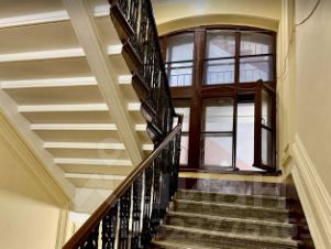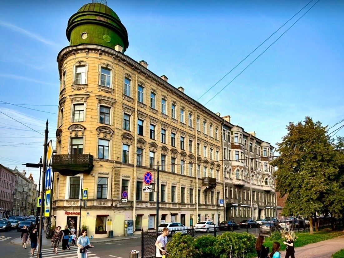 Дом, памятник архитектуры, расположен на углу Большого проспекта и улицы Блохина, до метро одна минута.