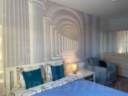Комфортная двуспальная кровать 160х200 с ортопедическим матрасом и раскладной кроватью в спальне, двуспальный диван-книжка в кухне. Размещение: 2+2+1 персон.