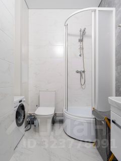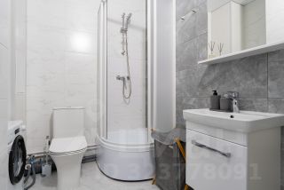 Совмещенный санузел с душевой кабиной, стиральной машиной, полотенцесушителем и теплым полом.