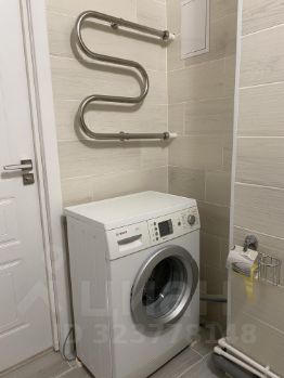 Ванна с душем в санузле, стиральная машина, фен, утюг, гладильная доска, сушилка, средства для душа и стирки.