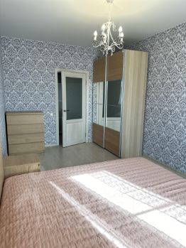 Комната 2: большая спальня с двуспальной кроватью (160х200), ортопедическим матрасом, прикроватные тумбочки, комод и вместительный шкаф-купе. Есть спальные принадлежности (одеяло, подушки)
