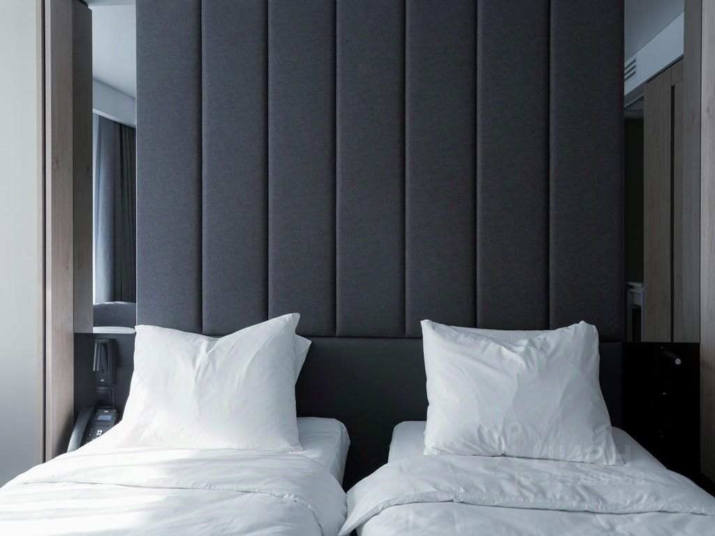 Минималистичный, светлый дизайн с теплыми оттенками. За счет больших панорамных окон в номере светло и уютно.