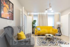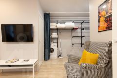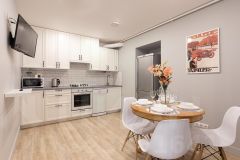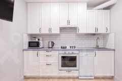 - полноценная кухня (газовая плита, стиральная и посудомоечная машины, холодильник, СВЧ-печь, электр. чайник)