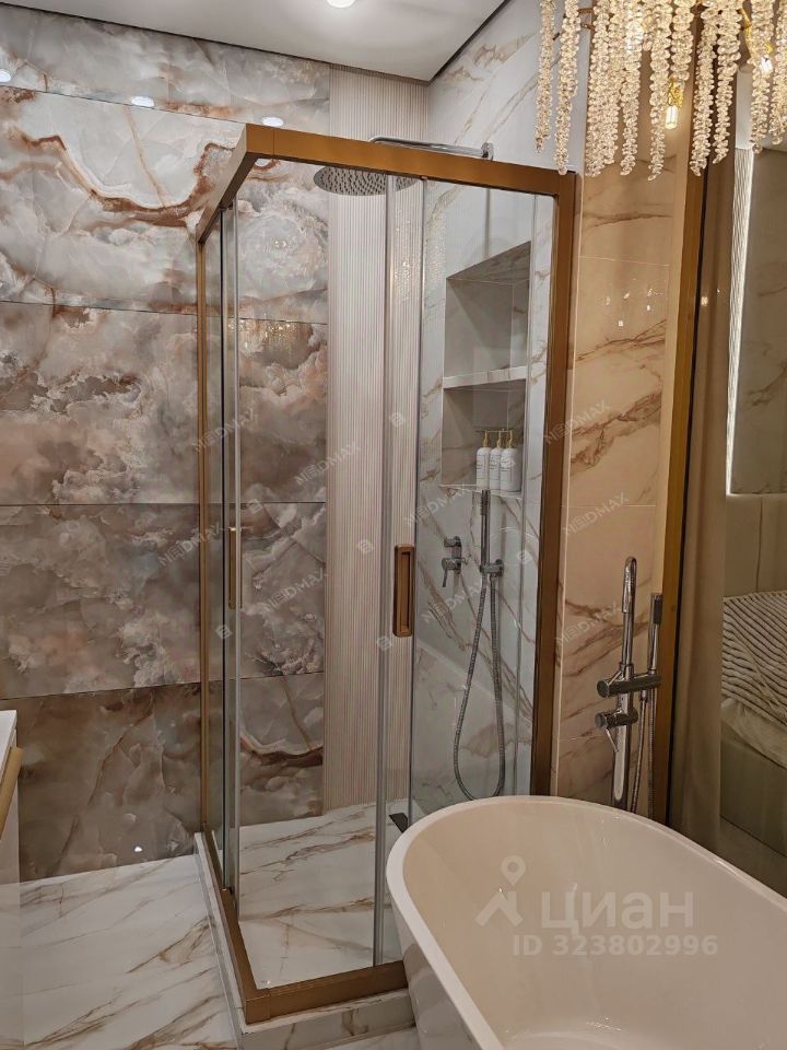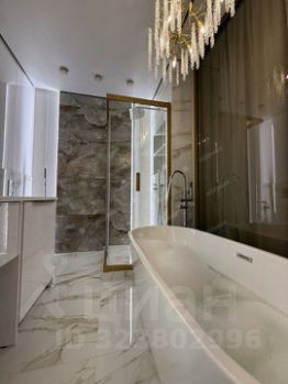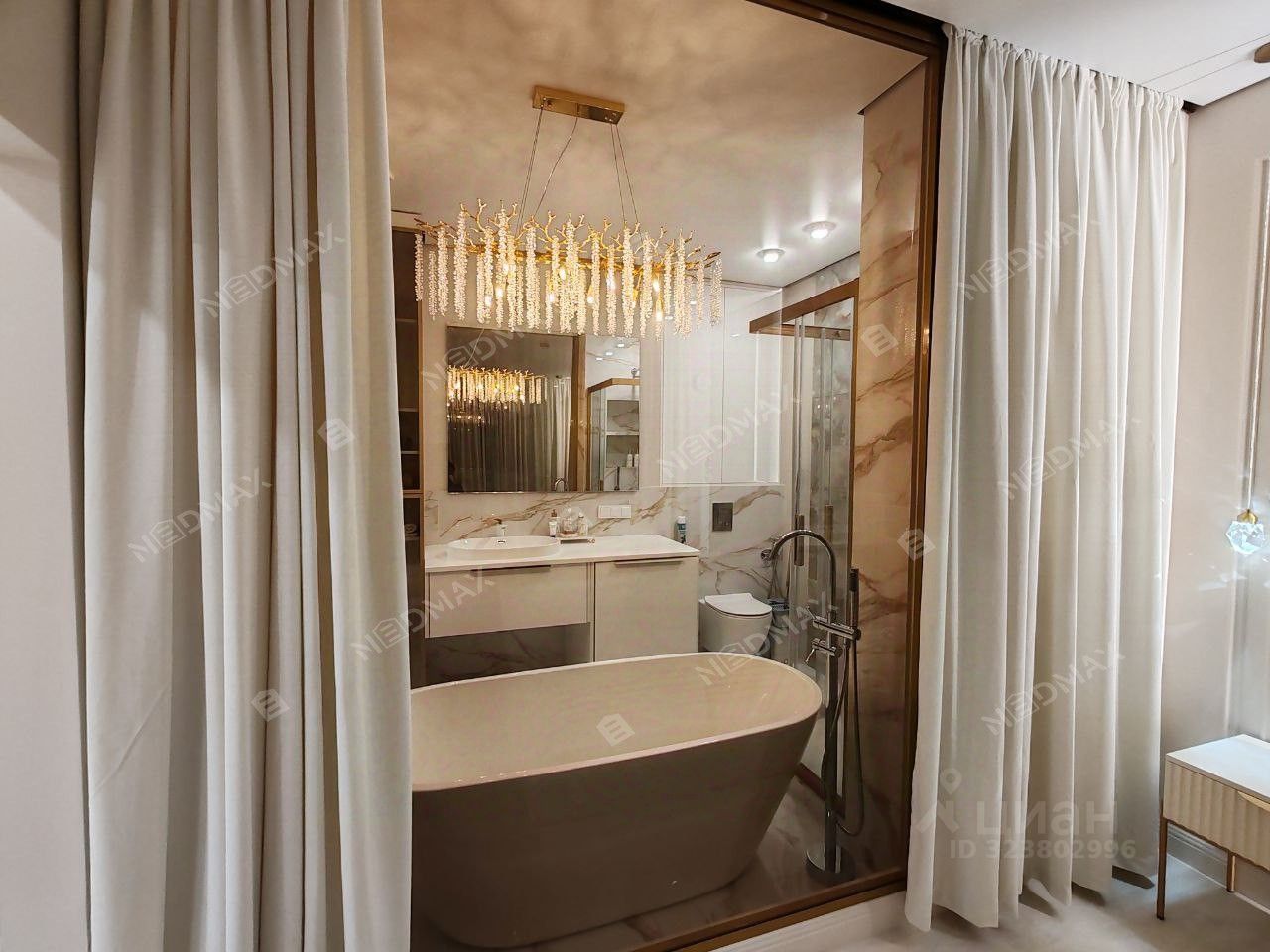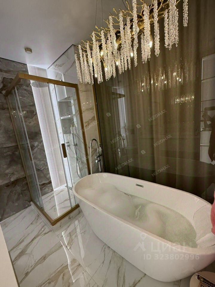 • В ванной комнате установлены душевая кабина и отдельностоящая белоснежная ванна — создают условия для приятных процедур и расслабления. Предусмотрен гигиенический душ.
