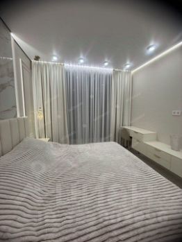 • Просторная спальня с откатной зеркальной дверью и продуманным освещением, создающим ощущение лёгкости и уюта.