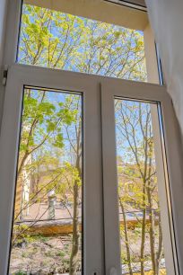 Окна выходят в Черноморский переулок, в квартире достаточно тихо несмотря на центральное расположение. Гостиная и кухня находятся внизу, спальное место наверху. В ванной комнате ванна.