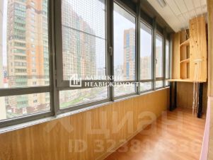 -Просторный балкон. На окне установлена сетка-антикошка.
