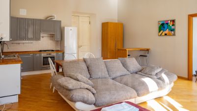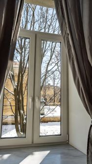 Важно: собственная ванная комната находится вне квартиры - нужно пройти через общую прихожую.