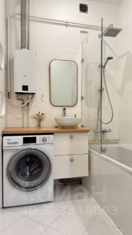 - Санузел раздельный. В ванне располагается стиральная машина. Проблем с горячей водой не будет, тк установлена газовая колонка.