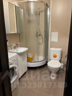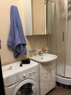 Совмещённый санузел с душевой кабиной и стиральной машиной.