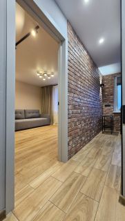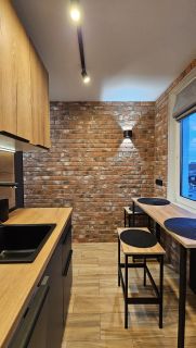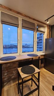 Абсолютно новая, стильная однокомнатная квартира с дизайнерским ремонтом в актуальном стиле Лофт. Вы будете первыми жильцами этого уютного пространства с живописным видом из окна!