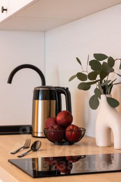 -Полностью укомплектованная кухня : индукционная плита, чайник, духовка, микроволновая печь, холодильник, посуда и столовые приборы