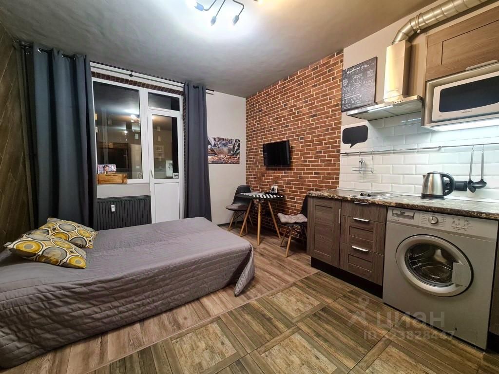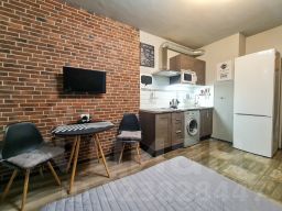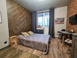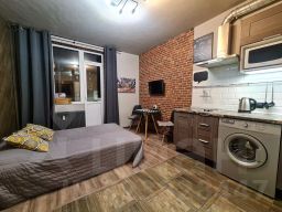 Квартира в отличном состоянии, чистая и аккуратная! Был сделан качественный ремонт по авторскому проекту в стиле "лофт" - потолки и стены окрашены интерьерной краской, отделаны фасадным кирпичом и керамической плиткой; сделано комбинированное напольное покрытие из ламината и керамогранита, установлены пластиковые окна и надежная металлическая входная дверь. Квартира укомплектована всей необходимой мебелью и бытовой техникой (в том числе гладильная доска, сушилка для белья, утюг и столовая посуда). В качестве спального места используется удобный раскладывающийся диван-кровать ИКЕА. Проведено кабельное телевидение и беспроводной интернет (WI-FI).