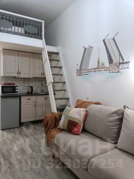 Студия со свежим ремонтом, актуальным дизайном, современной бытовой техникой, высокими потолками в центре Петербурга.