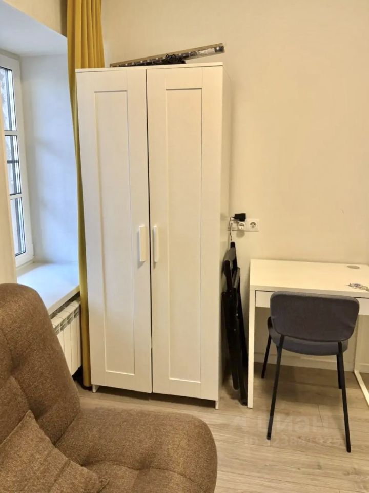 В кухонной зоне холодильник, чайник, плита, микроволновка, раковина, шкафчик. В спальном уголке двуспальный удобный диван, рабочий стол со стулом, платяной шкаф икея, полочка. Собственный санузел с душем, большой стиралкой. Прихожая с обувницей. Хорошая входная дверь с большим зеркалом. Два окна с видом на улицу. Адекватная шумоизоляция. Проведен wi-fi.