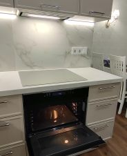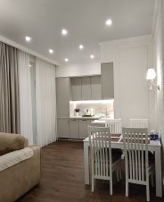 Укомплектована дорогой, фирменной мебелью и встроенной техникой. Стиральная машина, холодильник, э/чайник, дух/печь и м/печь два в одном, кухонный гарнитур, индукционная плита.