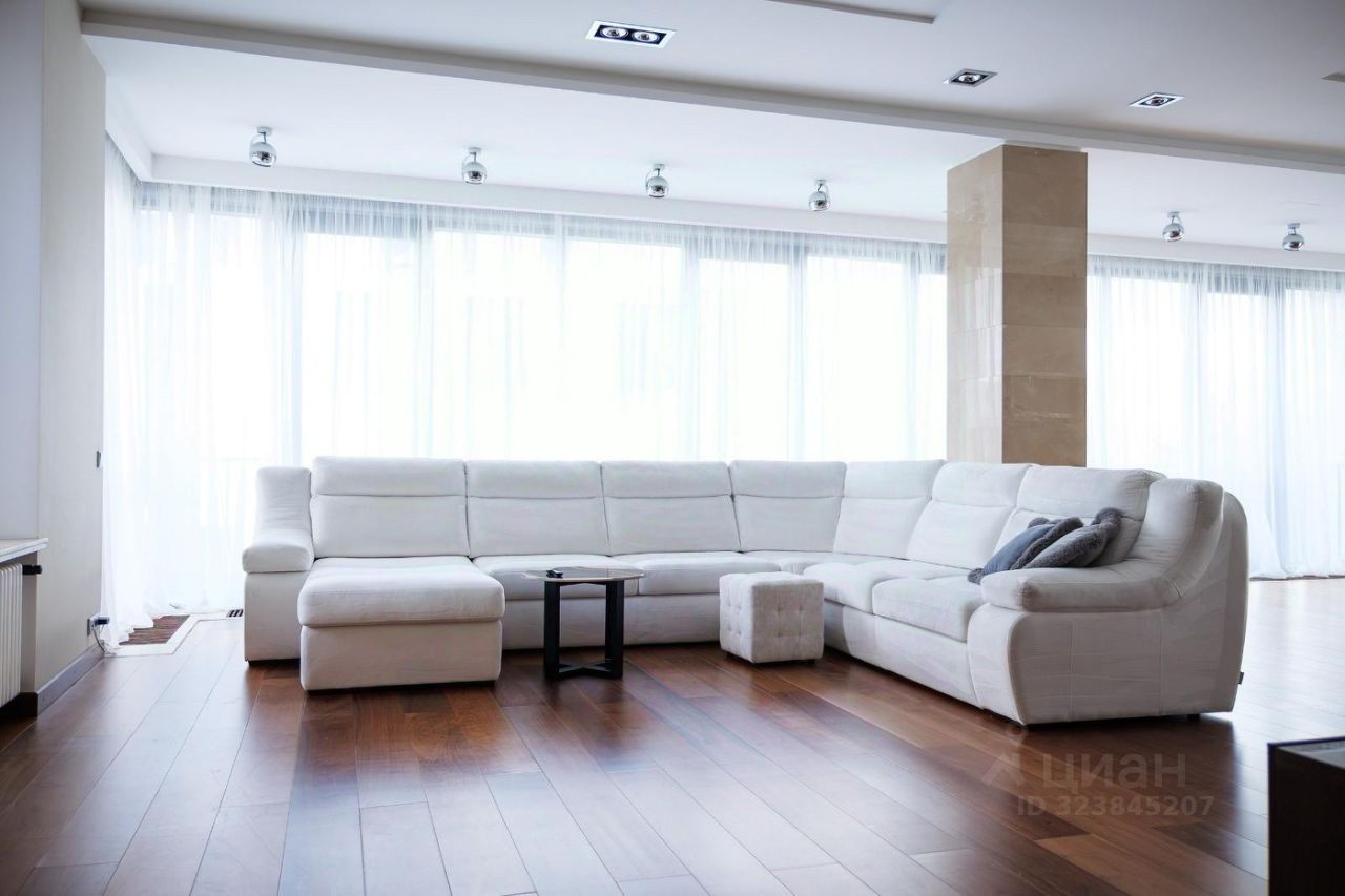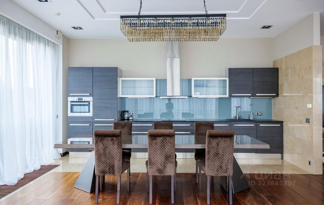3- Кухня- гостиная с обеденной зоной и мягкой группой, панорамные окна в пол.