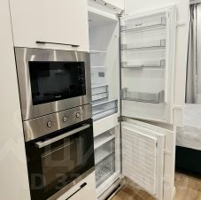 Вся новая техника премиум-класса: встроенный холодильник с полноценной морозильной камерой, посудомойка, стиральная машина, встроенный духовой шкаф и микроволновая печка, варочная панель, фильтр для питьевой воды, смарт-телевизор, wifi роутер с подключённым интернетом.