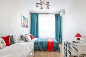 В спальне:двухспальная кровать и кушетка (двухспальная), раскладывается при необходимости. В гостиной:раскладной диван и 2 раскладных кресла.