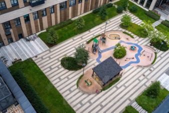 -стильная дворовая территория, разделенная на несколько тематических зон