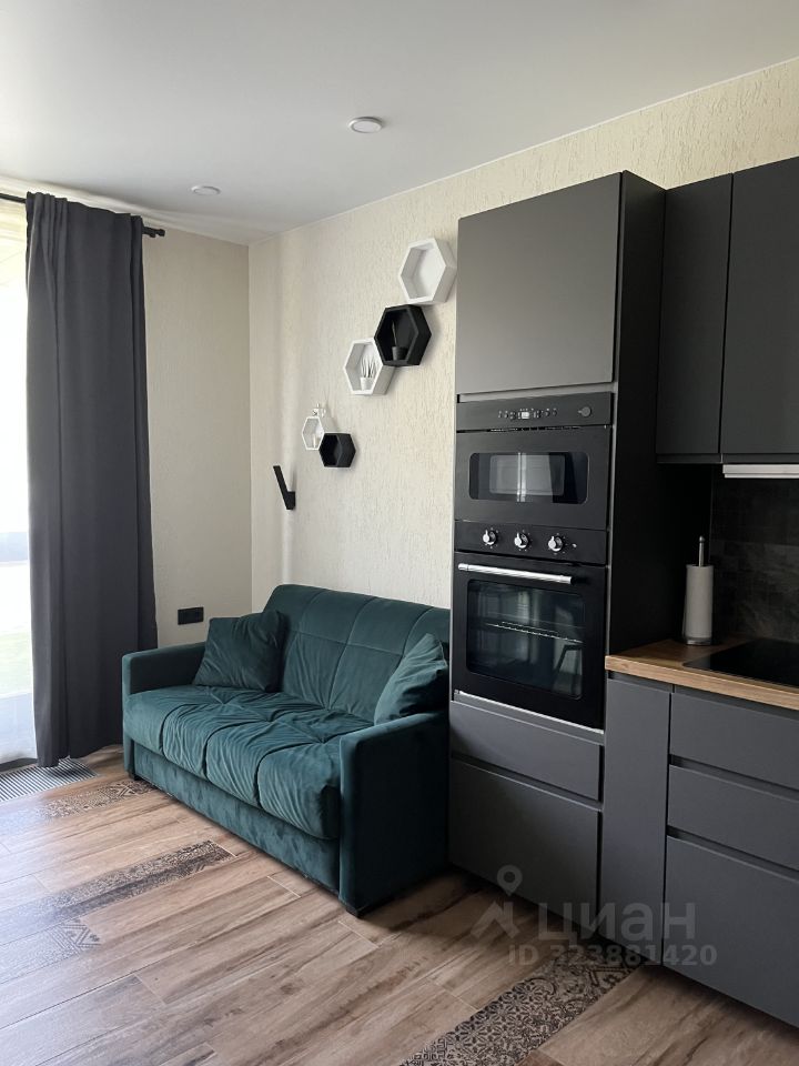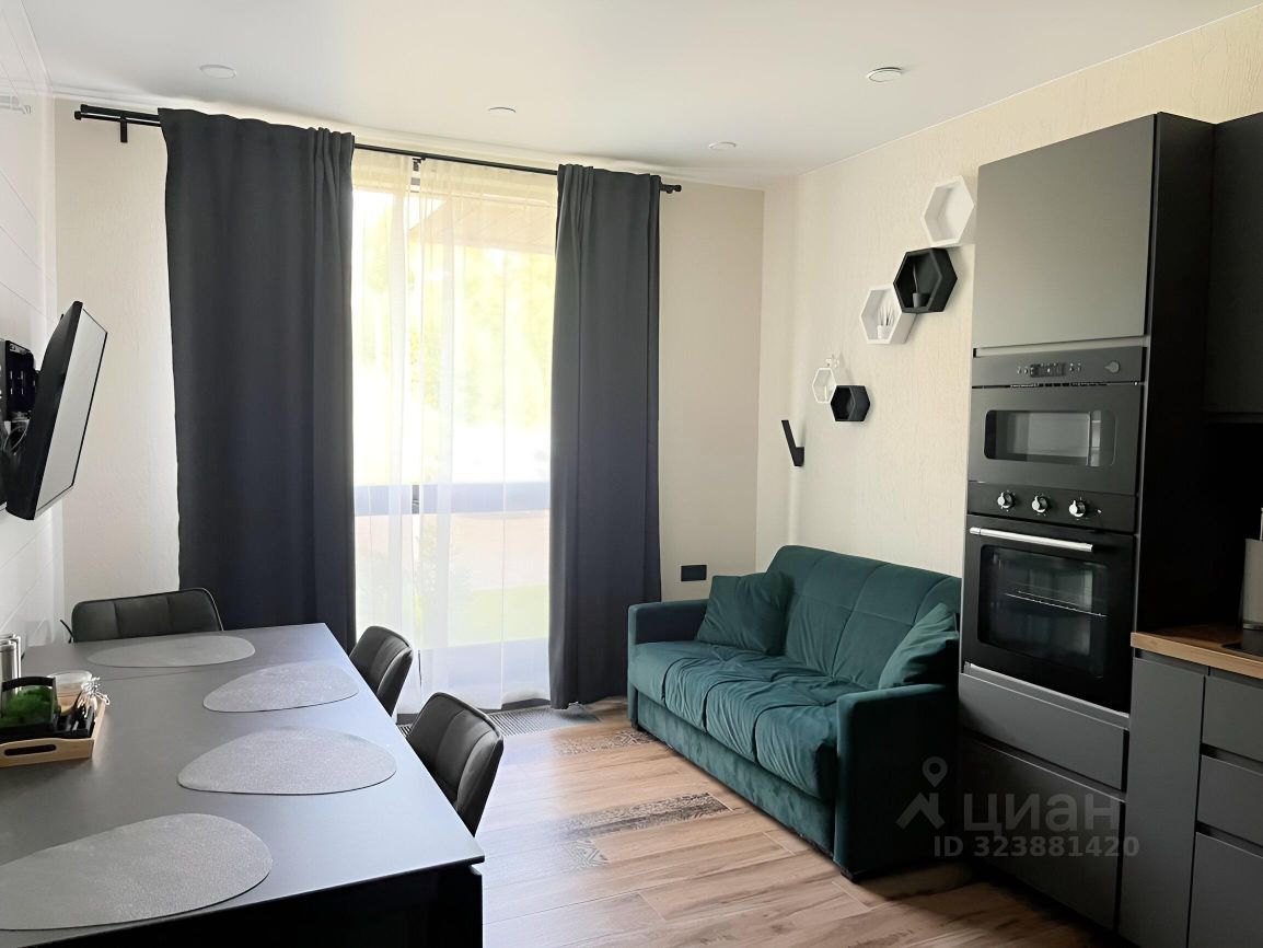 Оборудованная кухня с обеденной зоной, укомплектованная всей необходимой техникой и посудой, столовыми приборами. В кухне-гостиной есть двуспальный диван-кровать с удобным матрасом, на кухне установлен кондиционер.