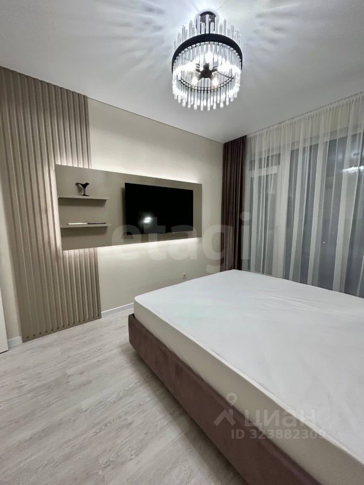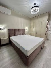 В спальне предусмотрен вместительный встроенный шкаф, декоративная настенная подсветка и панели, смарт тв , матрас Askona
