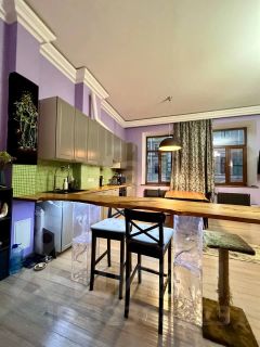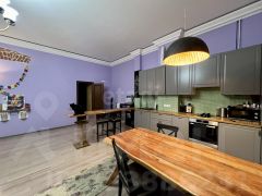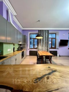 просмотры по договоренности можно организовать Сдается Данная квартира-студия площадью 65 м² расположена в историческом центре Санкт-Петербурга в шаговой доступности от станции метро. Пространство организовано по принципу open-space с высокими потолками 3,2 метра и тремя окнами, что создает ощущение простора и наполняет помещение естественным светом. Планировочное решение грамотно зонирует площадь на спальную, гостевую и рабочую зоны. Кухонный гарнитур увеличенного размера дополнен практичной барной стойкой и отдельным обеденным столом из натурального дерева. Для комфортного хранения вещей предусмотрен большой встроенный шкаф. Особого внимания заслуживает санузел, в котором установлена полноценная ванна и отдельная душевая . Квартира полностью укомплектована современной итальянской бытовой техникой, включая посудомоечную машину, и качественной мебелью. Объект сдается на длительный срок и готов к заселению, сочетая преимущества центральной локации с безупречным состоянием и продуманной эргономикой всех жилых зон.