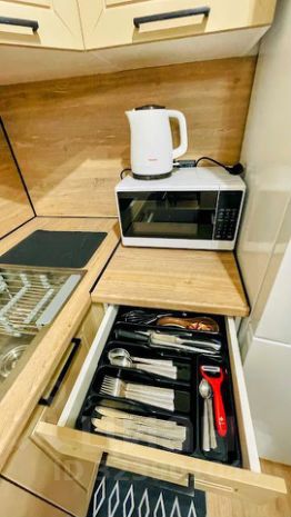 - Kуxня-гoстиная 16,5 кв.м. c coвpеменнoй мeбелью и тexникой — создaйтe уютные вечepа и принимаетe гостeй легко!