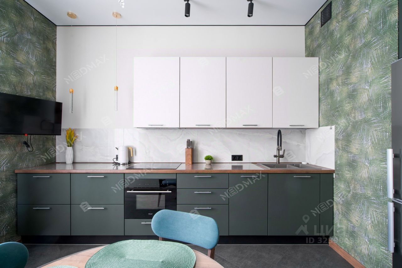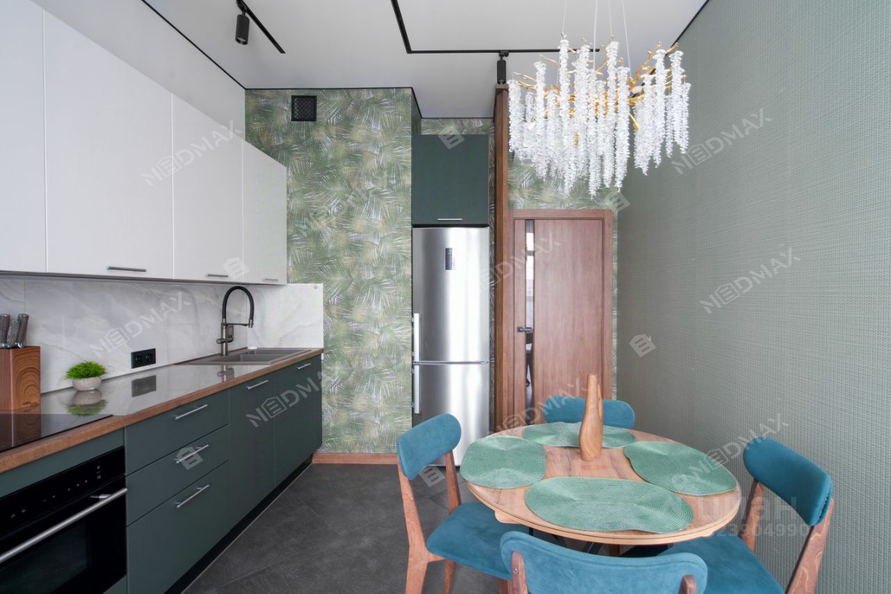 Просторная кухня идеально подойдет для семейных обедов и уютных вечеров. Кухня оборудована всей необходимой бытовой техникой.