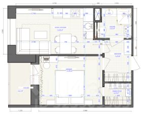 Спальня со встроенной гардеробной, что позволяет избавится от нагромождения лишней мебели.