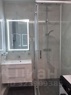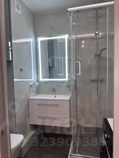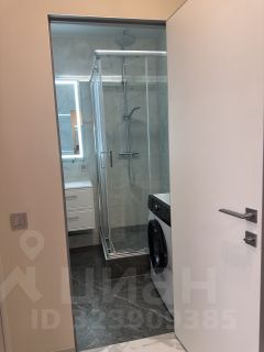 В отделке санузла использованы крупноформатные керамогранитные плиты. Санузел оборудован полувстроенной душевой кабиной, стиральной машиной, электрическим полотенцесушителем.