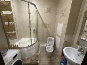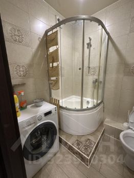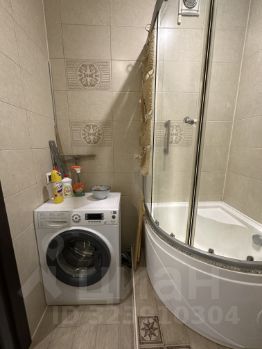 совмещенный санузел с душевой кабиной и стиральной машинкой
