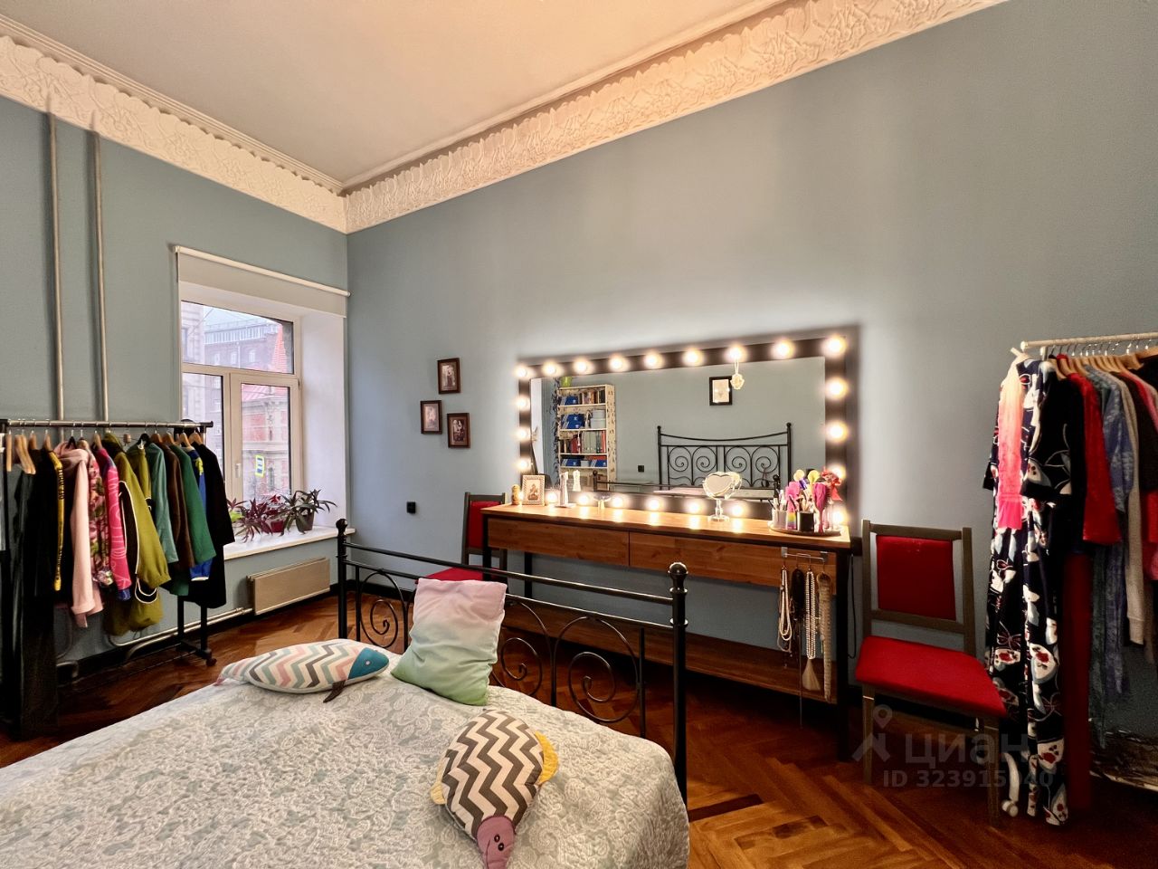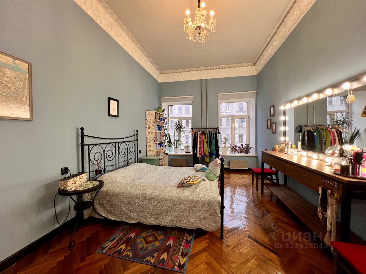 Вы сэкономите время и силы на обустройстве быта: рабочее место с большим столом, рабочим креслом, большие зеркала, шкафы для хранения, стеллажи и комоды уже есть в этой квартире.
