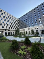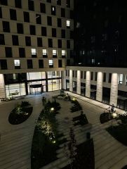 Также, в здании апарт-отеля, находятся рестораны, кафе, бары, прачечная и клиника Первая Линия