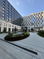 Просторные общественные пространства с коворкинг-зонами, созданными ведущими международными бюро.