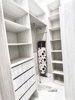 * Большой шкаф-гардеробная с продуманной системой хранения, отдельными полками для обуви и сейфом.