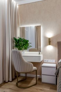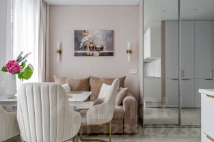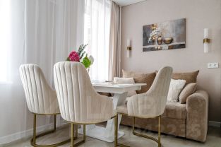 Эстетика и атмосфера: большое зеркало у входа, стильная мягкая мебель, разноуровневая вечерняя подсветка — каждая деталь продумана для вашего комфорта и настроения.
