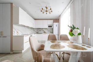 Просторная кухня-гостиная — идеальное место для семейных ужинов или встреч с друзьями.