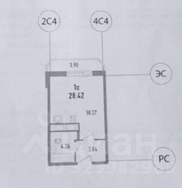- Общая площадь 26 м² + лоджия 3,9 м²
