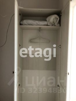 В коридоре шкаф для одежды с вешалками и постельными принадлежностями.